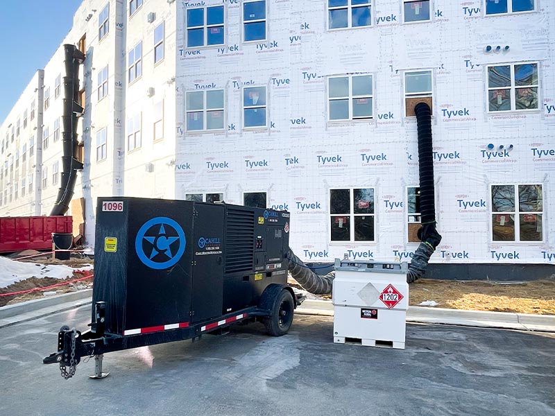 Cahill Heating provides major construction projects with the most fuel-efficient heating technology in the market today. With enough heat output to match multiple competitive heaters, you are guaranteed a cluster-free site and rental and fuel cost savings. For large construction projects with multiple heaters, the savings run upward of a million dollars.